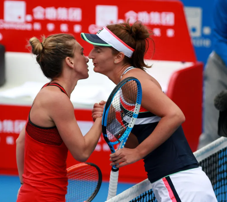 Simona Halep (S), locul 1 WTA, s-a calificat, vineri, 5 ianuarie 2018, in finala turneului de la Shenzen, China, dupa ce a trecut de Irina Begu (D), locul 43 WTA, scor 6-1, 6-4. In finala se va duela cu Katerina Siniakova. © FOTO: Zhong Zhenbin / Hepta / Sport Pictures
