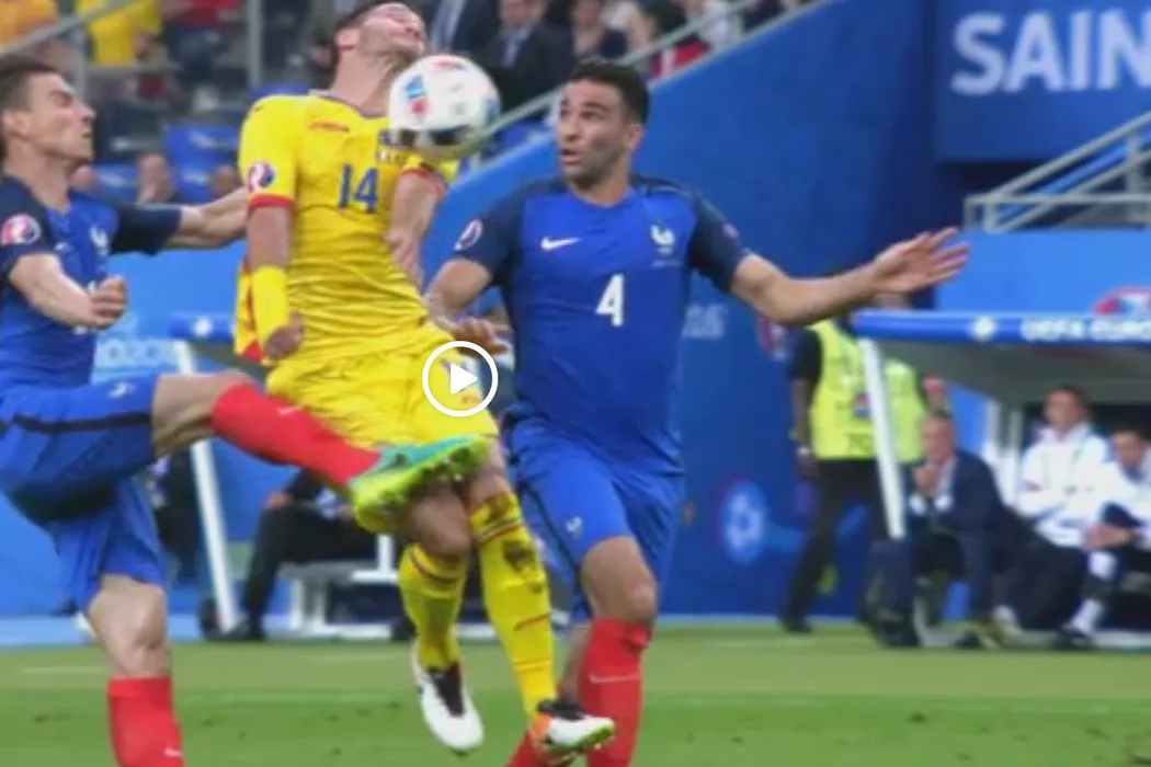 Cea mai controversată fază a primei reprize din Franța – România! Andone a căzut la marginea careului, Kassai a lăsat jocul să continue