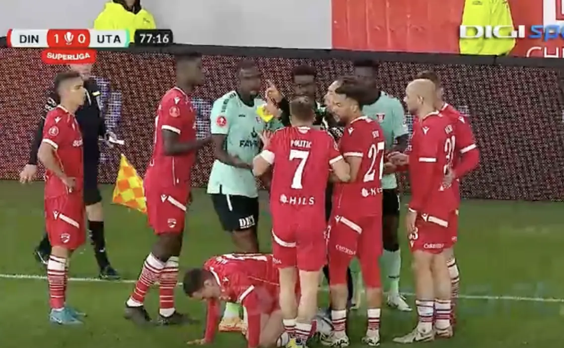 Cea mai controversată fază a sezonului s-a petrecut în Dinamo – UTA 1-0. Gafă uluitoare a arbitrului George Găman: un fotbalist a primit două cartonașe galbene, dar nu a fost eliminat!