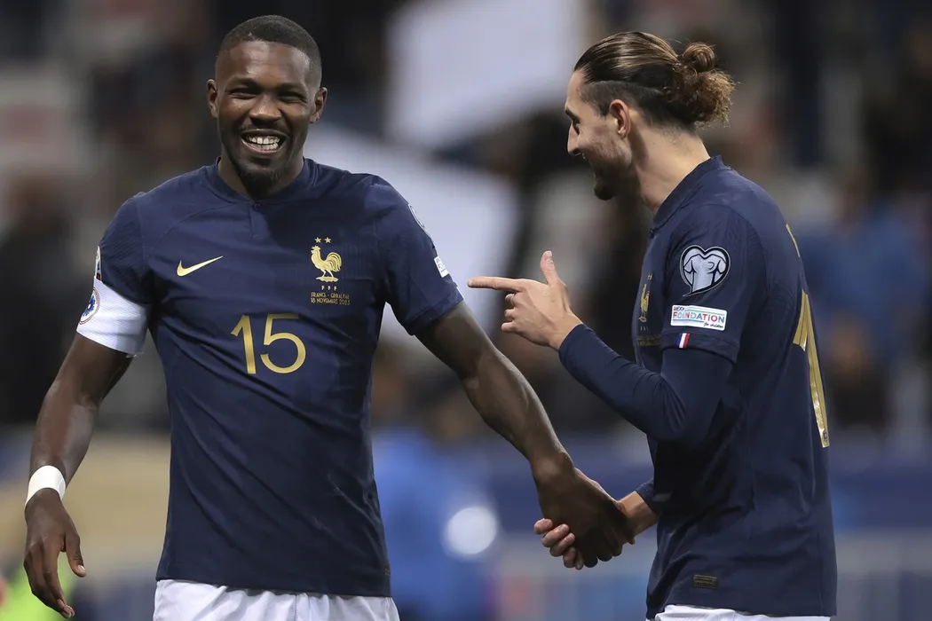 * United Kingdom Rights OUT * Please contact your sales representative with questions., Model Release: no, Pictured: Adrien Rabiot,Marcus Thuram