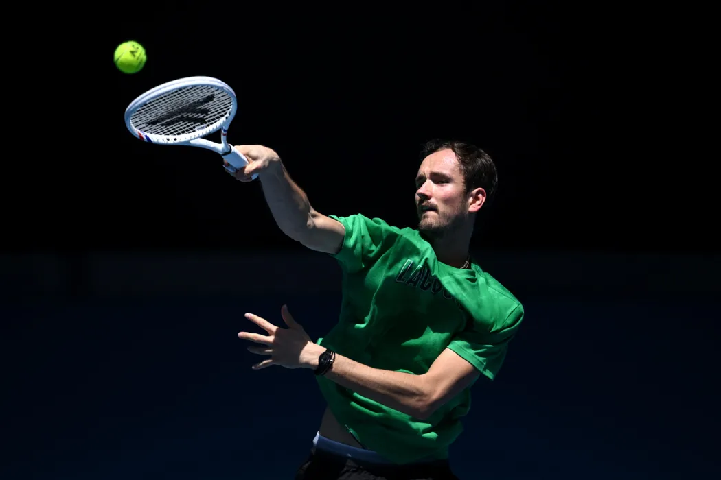 11 January 2025, Australia, Melbourne: Russian tennis player Daniil Medvedev hits a backhand return during a practice session at Melbourne Park ahead of the Australian Open. Photo: Joel Carrett/AAP/dpa