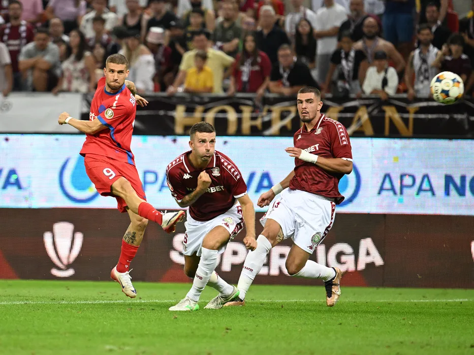 George Daniel Bîrligea, Lars Kramer si Denis Ciobotariu in meciul de fotbal dintre Rapid Bucuresti si FCSB, din cadrul Superligii Superbet, desfasurat pe Arena Nationala din Bucuresti, duminica 17 august 2025. © FOTO:Razvan Pasarica/SPORT PICTURES