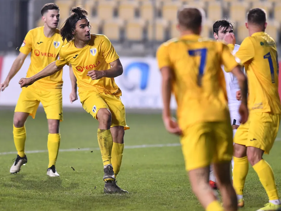 Marian Fernando Huja inscrie un gol in meciul de fotbal dintre Petrolul Ploiesti si Gloria Buzau, contand pentru Liga a-2-a Casa Pariurilor, desfasurat fara spectatori pe Stadionul Ilie Oana din Ploiesti, miercuri 25 noiembrie 2020. © FOTO:Razvan Pasarica/SPORT PICTURES