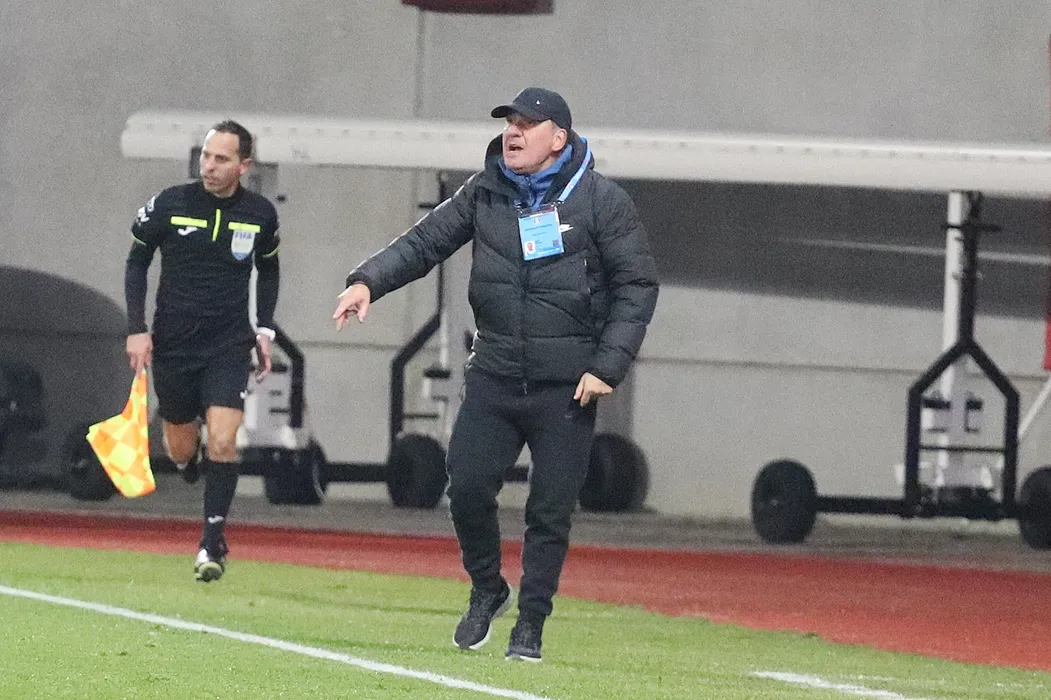 Gheorghe Hagi dând indicații în meciul de fotbal dintre AFC Hermannstadt Sibiu si Farul Constanța, petru Cupa României Betano, desfășurat pe Stadionul Municipal din Sibiu, marți 3 decembrie 2024. © FOTO: Valentin MACREA/SPORT PICTURES