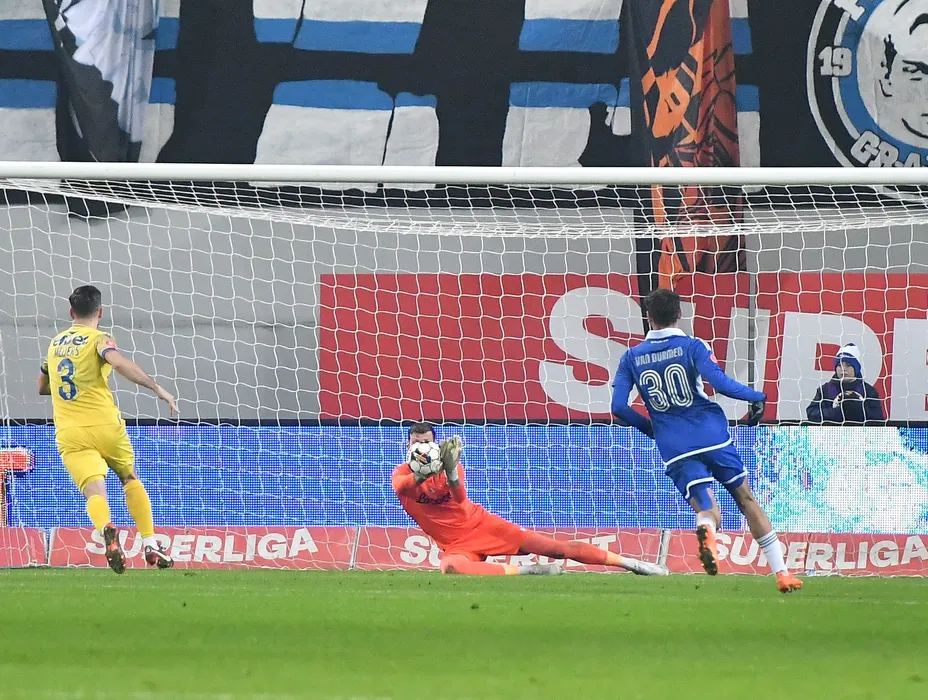 Lukas Zima și Andre P. Benjamin Van Durmen în meciul de fotbal dintre FCU 1948 Craiova Fotbal Club SA și ACS Petrolul 52 Ploiesti, contând pentru Superliga Superbet, desfășurat pe Stadionul Ion Oblemenco din Craiova, marți 19 decembrie 2023. © FOTO: Remus BADEA/SPORT PICTURES
