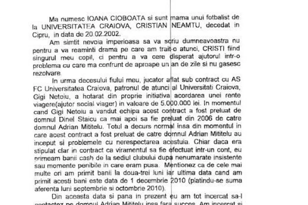 „Cei care au distrus Craiova se folosesc de mama lui Cristi Neamțu pentru denigrarea lui Mititelu”** Replica Științei la scrisoarea către FRF