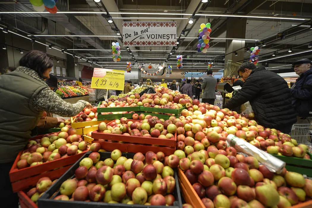 Persoane aleg mere puse la vanzare in centrul comercial Carrefour din cadrul mall-ului Veranda in timpul deschiderii oficiale, in Bucuresti, joi, 27 octombrie 2016. Veranda Mall, centrul comercial din zona Bucur Obor din Capitala, si-a deschis portile joi, dimineata. ANDREEA ALEXANDRU / MEDIAFAX FOTO