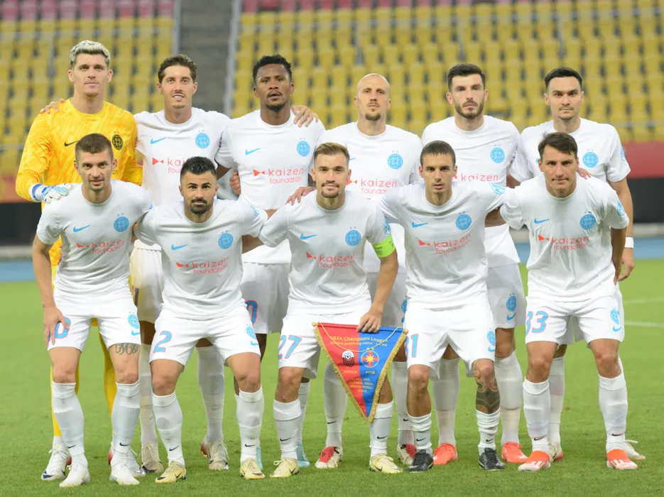 Fotbalistii ros-albastrii la o fotografie de grup realizata inaintea meciului de fotbal dintre Shkëndija si FCSB, contand pentru Turul 2 al Preliminariilor Ligii Campionilor, desfasurat pe National Arena Todor Proeski din Skopje, marti 22 iulie 2025. © FOTO:Alexandra Cristina Grigorescu/SPORT PICTURES