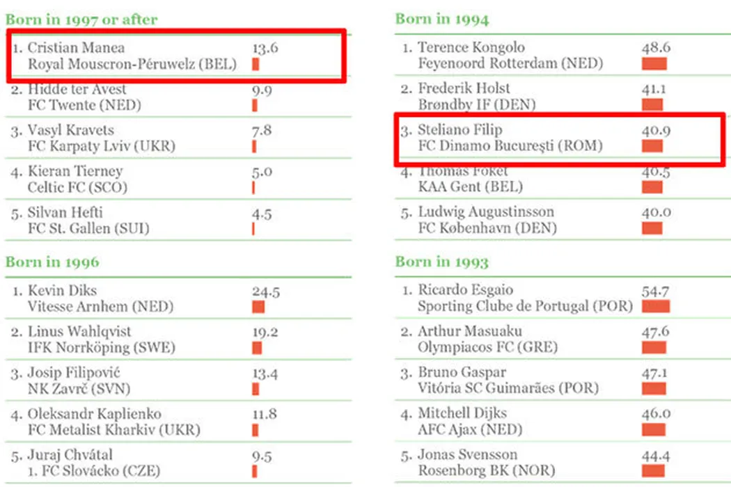 Cei mai experimentați tineri jucători români, potrivit unui studiu european. Dinamo are cei mai mulți puști interesanți în lot. Câți au Steaua și Viitorul