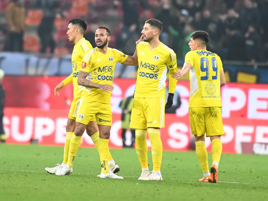 Bucurie a fotbalistilor rapidisti dupa un gol marcat cu Seto Takayuki, Jair Tavares Da Silva, Gheorghe Teodor Grozav si Florin Gheorghe Borta in meciul de fotbal dintre Rapid Bucuresti si Petrolul Ploiesti, contand pentru Superliga Superbet, desfasurat pe Arena Nationala din Bucuresti, miercuri 14 decembrie 2022. © FOTO:Razvan Pasarica/SPORT PICTURES