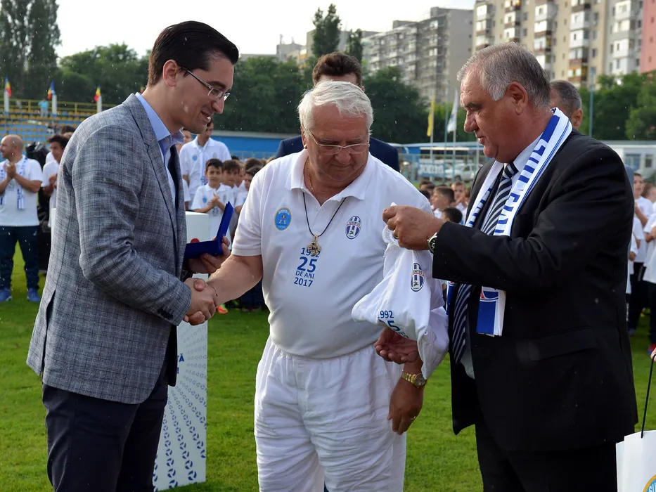 Razvan Burleanu,Ilie Ionel Ciuclea si Gheorghe Chivorchian dupa promovarea in Liga 1 in urma meciului de fotbal dintre Juventus Bucuresti si Metalul Resita,in cadrul ligii adoua, disputat pe stadionul Juventus din Bucuresti, miercuri 31 mai 2017. Razvan Pasarica/SPORT PICTURES