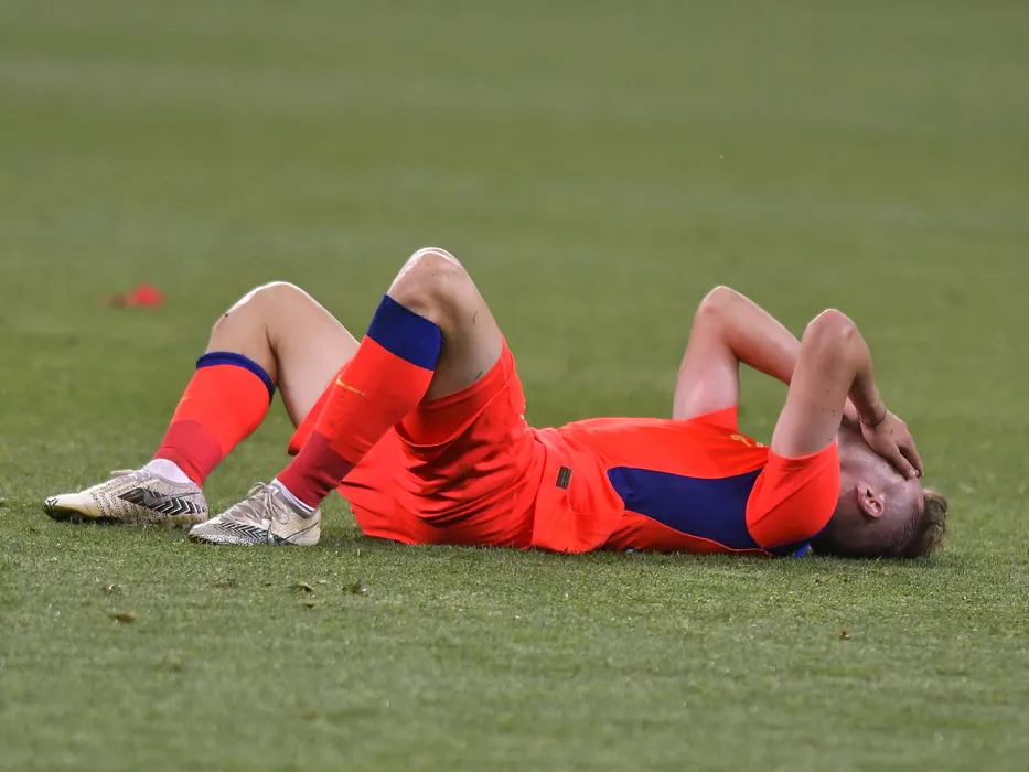 Darius Dumitru Olaru la pamant dupa meciul de fotbal dintre FC Voluntari si FCSB, contand pentru Play-off-ul Ligii 1 Casa Pariurilor, desfasurat pe Arena Nationala din Bucuresti, sambata 14 mai 2022. © FOTO:Razvan Pasarica/SPORT PICTURES