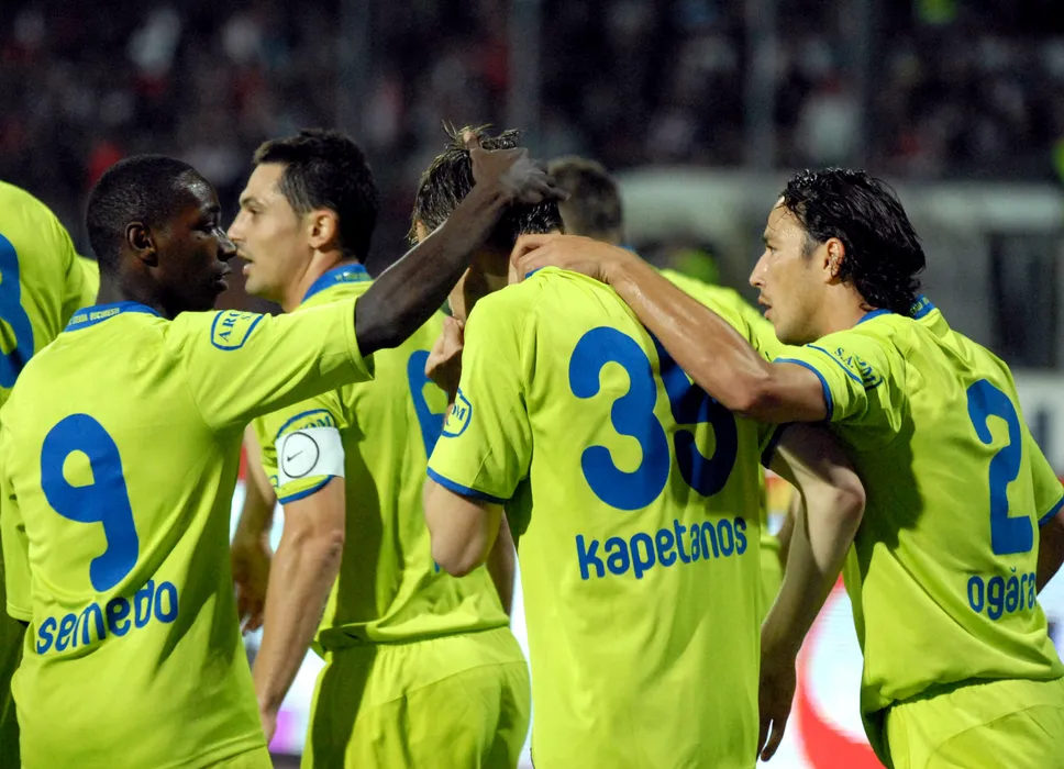 Antonio Semedo si George Ogararu il felicita pe Pantelis Kapetanos pentru golul marcat.