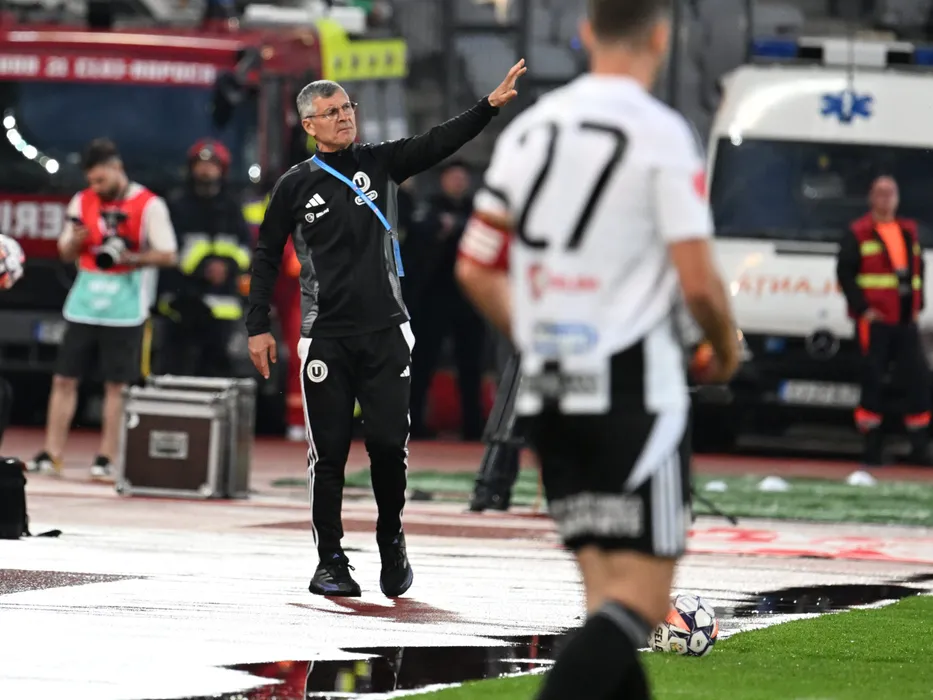 Ovidiu Ioan Sabau reacționează în meciul de fotbal dintre Universitatea Cluj si Universitatea Craiova, contând pentru Play off-ul Superligii Superbet, desfășurat pe Cluj Arena din Cluj Napoca, sambata 26 aprilie 2025. © FOTO:Răzvan Pasarica/SPORT PICTURES
