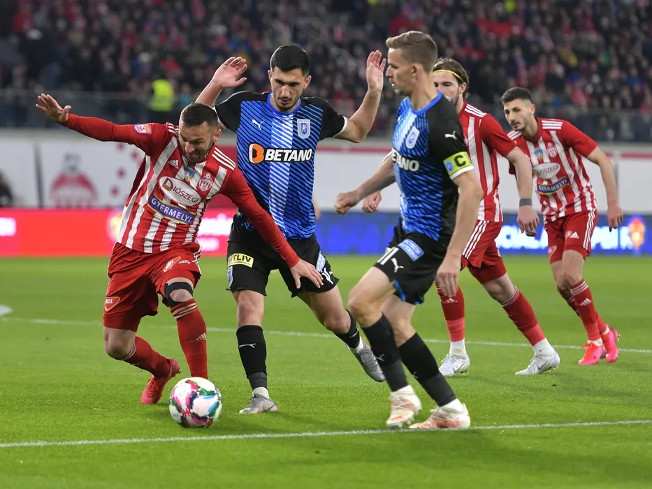 Radoslav Dimitrov, Andrei Virgil Ivan, Nicusor Silviu Bancu si Mihai Alexandru Balasa in meciul de fotbal dintre Sepsi OSK Sfantu Gheorghe si Universitatea Craiova, contand pentru Cupa Romaniei, desfasurat pe Sepsi Arena din Sfantu Gheorghe, 20 aprilie 2022. © FOTO:Razvan Pasarica/SPORT PICTURES