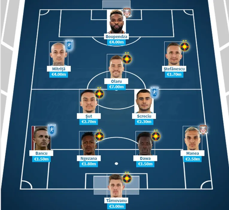 Cel mai scump prim 11 din Superliga României! FCSB are cei mai mulți jucători, iar Universitatea Craiova și Rapid completează echipa ideală