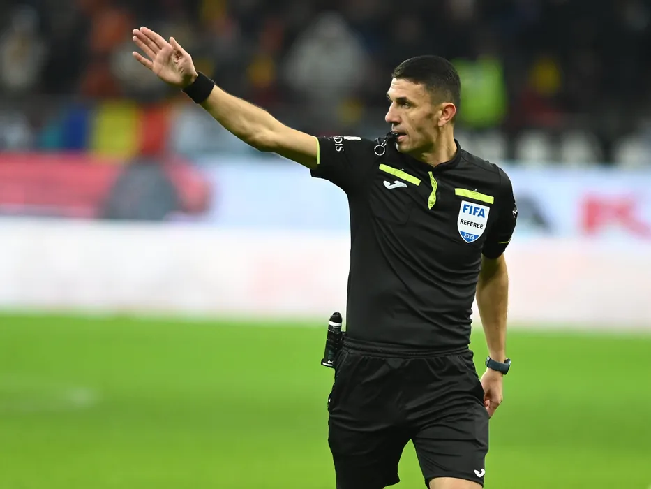 Arbitrul central Marcel Birsan reactioneaza in meciul de fotbal dintre FCSB si Otelul Galati, din cadrul Superligii Superbet, desfasurat pe Arena Nationala din Bucuresti, duminica 3 decembrie 2023. © FOTO:Razvan Pasarica/SPORT PICTURES
