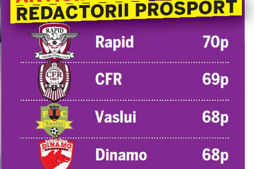 Cel mai strâns sezon din istorie!** Dinamo, CFR, Rapid, Vaslui și Steaua se află într-o situație UNICĂ‚: sunt despărțite de echivalentul unei singure victorii