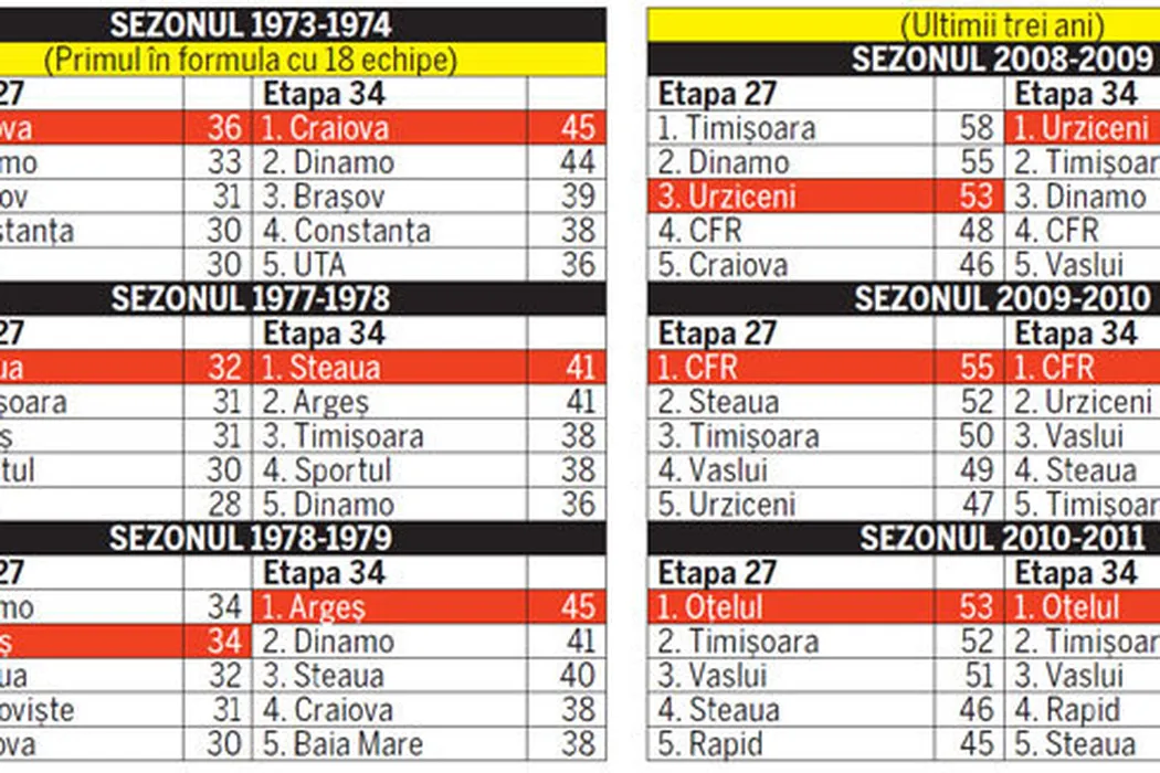 Cel mai strâns sezon din istorie!** Dinamo, CFR, Rapid, Vaslui și Steaua se află într-o situație UNICĂ‚: sunt despărțite de echivalentul unei singure victorii