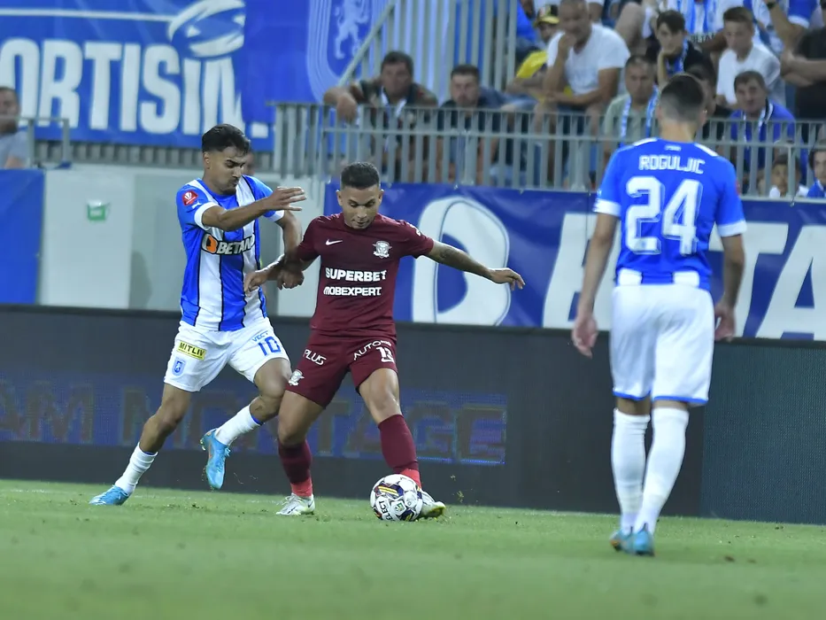 Stefan Baiaram si Morais Junior Iraneuton Sousa in meciul de fotbal dintre Universitatea Craiova si Rapid Bucuresti, contand pentru Superliga Superbet, desfasurat pe Stadionul Ion Oblemenco din Craiova, duminica 31 iulie 2022. © FOTO:Razvan Pasarica/SPORT PICTURES