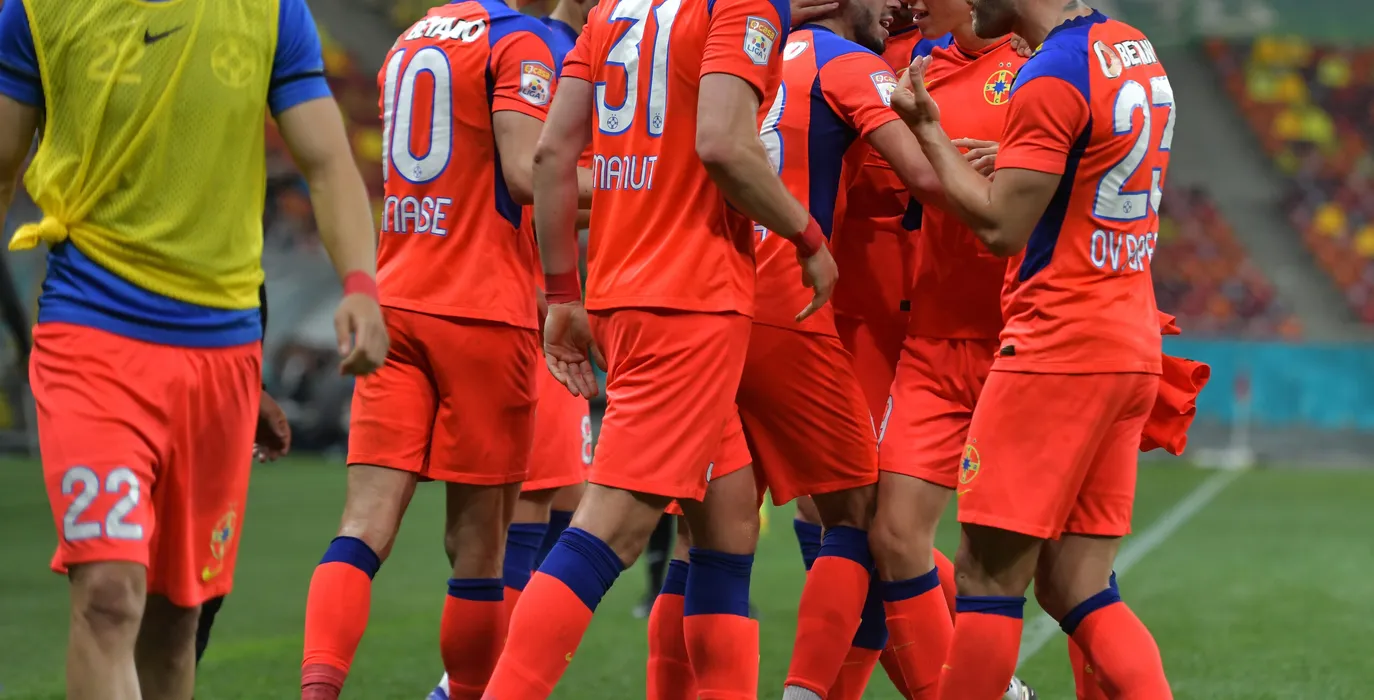 Bucurie a fotbalistilor stelisti dupa un gol marcat cu Florin Lucian Tanase, Ivan Mamut, Andrei Ioan Cordea, Octavian George Popescu si Ovidiu Marian Popescu in meciul de fotbal dintre FC Voluntari si FCSB, contand pentru Play-off-ul Ligii 1 Casa Pariurilor, desfasurat pe Arena Nationala din Bucuresti, sambata 14 mai 2022. © FOTO:Razvan Pasarica/SPORT PICTURES