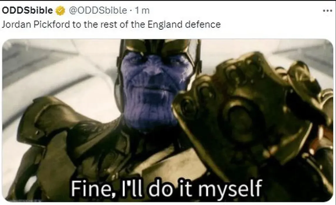 Jordan Pickford, către restul fundașilor Angliei: „Bine, voi face eu totul”. SURSA FOTO: platforma de socializarea X.