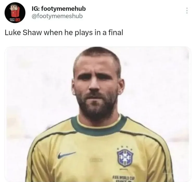 Luke Shaw atunci când joacă într-o finală. SURSA FOTO: platforma de socializarea X.