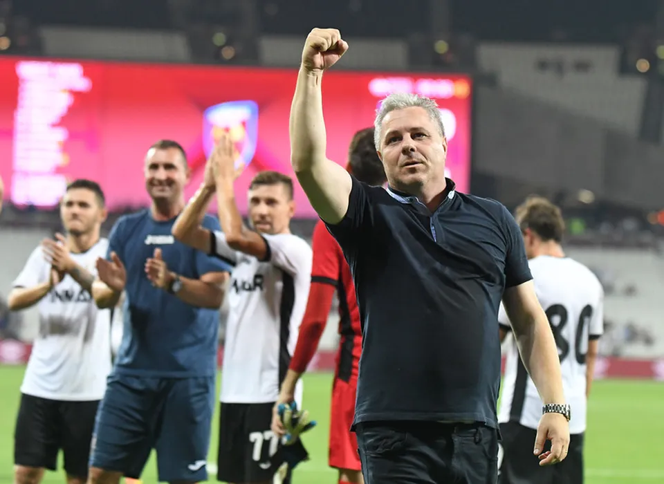Marius Sumudica, antrenorul echipei Astra Giurgiu, se bucura la finalul meciului de fotbal contra echipei West Ham Unite din UEFA Europa League, disputat pe Stadionul Olimpic din Londra, joi, 25 august 2016. Formatia Astra Giurgiu a castigat cu scor 1-0 meciul disputat cu West Ham United in partida retur din play-off-ul Europa League si a obtinut calificarea in grupele competitiei. Meciul tur a fost incheiat cu scorul de 1-1. COSMIN IFTODE / MEDIAFAX FOTO