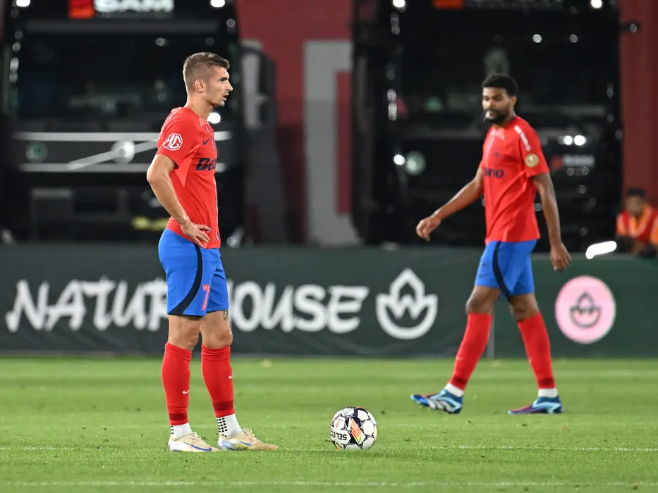 Fotbalistii stelisti printre care Florin Lucian Tanase dupa un gol anulat marcat de sibieni la meciul de fotbal dintre FC Hermannstadt si FCSB, contand pentru Superliga Superbet, desfasurat pe Stadionul Municipal din Sibiu, duminica 25 august 2024. © FOTO:Razvan Pasarica/SPORT PICTURES