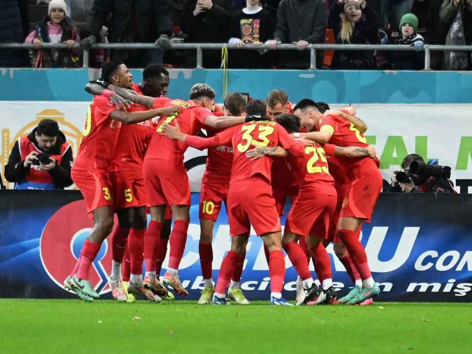 Bucurie a fotbalistilor stelisti Florinel Teodor Coman, Siyabonga Ngezana, Joyskim Aurelien Dawa Tchakonte, Baba Alhassan, Mihai Daniel Lixandru si Adrian Gheorghe �ut dupa un gol marcat in meciul de fotbal dintre FCSB si Farul Constanta, cont�nd pentru Superliga Superbet, desfă�urat pe Arena Nationala din Bucuresti, luni 5 februarie 2024. Bucuresti *** The joy of Stelisti footballers Florinel Teodor Coman, Siyabonga Ngezana, Joyskim Aurelien Dawa Tchakonte, Baba Alhassan, Mihai Daniel Lixandru and Adrian Gheorghe �ut after a goal scored in the football match between FCSB and Farul Constanta, for the Superbet Super League, played at the National Arena in Bucharest, Monday, February 5, 2024 Bucharest Copyright: xRăzvanxPÄSÄRICÄ/SPORTxPICTURESx,Image: 844790647, License: Rights-managed, Restrictions: Credit images as "Profimedia/ IMAGO", Model Release: no
