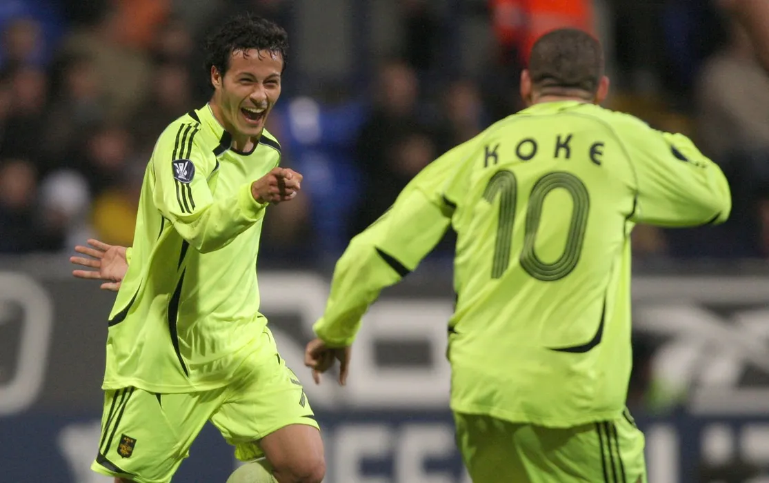 Antonio Klavo Arandes (L) of Aris Thessaloniki celebrates scoring with teammate Sergio Contreras Pardo Koke during the Uefa Cup group F football match against Bolton at The Reebok Stadium in Bolton, north-west England , 29 November , 2007.,Image: 23497918, License: Rights-managed, Restrictions: , Model Release: no