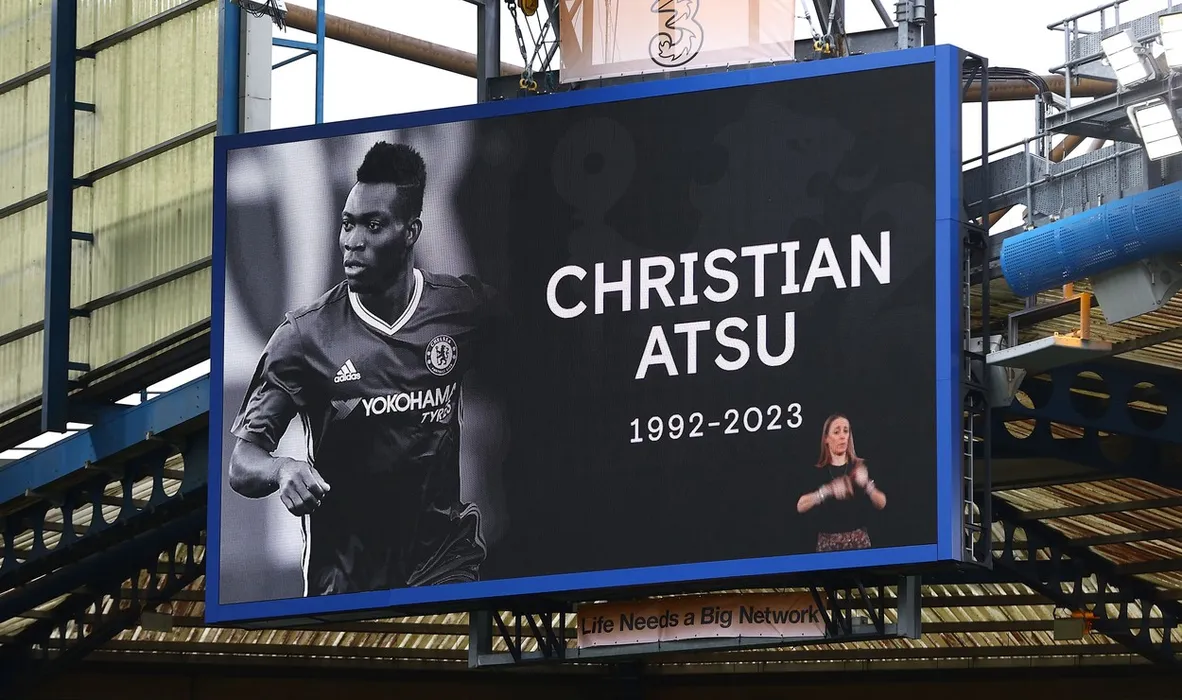A minutes applause is held before kick off for former Chelsea player Christian Atsu who died in the Turkish earthquakes