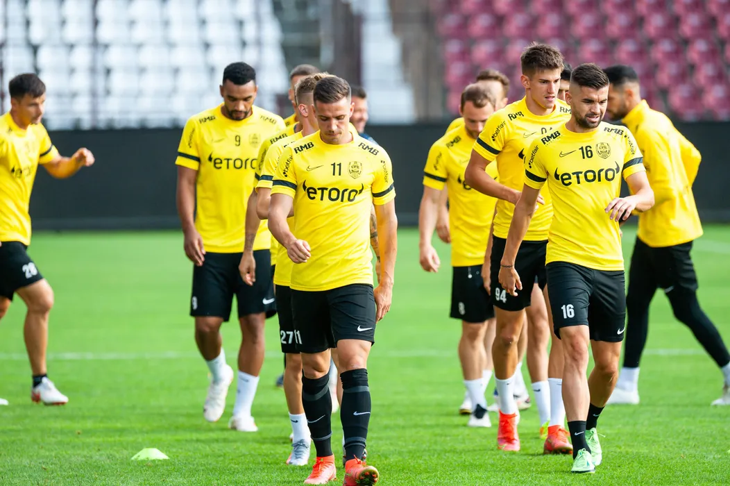 Jucatorii formatiei CFR Cluj efectueaza un antrenament pe stadionul Dr. Constantin Radulescu din Cluj-Napoca, marti, 27 iulie 2021. CFR Cluj intalneste miercuri, in mansa retur a turului II preliminar UEFA Champions League 2021/22, echipa Lincoln Red Imps FC. Meciul este programat in Gruia, de la ora 20:30. DAN HORIA TAUTAN / MEDIAFAX FOTO