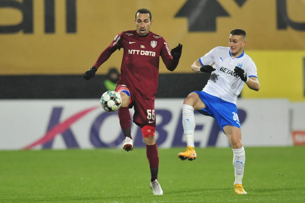 Paulo Vinicius (S), de la CFR Cluj, lupta pentru balon cu Ivan Mamut (D), de la Universitatea Craiova in meciul de fotbal din etapa a XV-a a Ligii 1, disputat pe stadionul Dr. Constantin Radulescu din Cluj-Napoca, marti, 22 decembrie 2020. DAN HORIA TAUTAN / MEDIAFAX FOTO