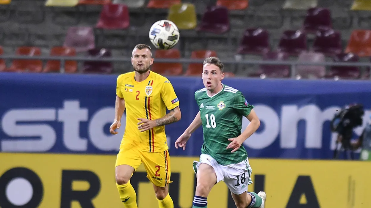 Alexandru Cretu si Gavin Whyte in meciul de fotbal dintre Romania si Irlanda de Nord, contand pentru Liga Natiunilor, desfasurat fara spectatori pe Arena Nationala din Bucuresti, vineri 4 septembrie 2020. © FOTO:Razvan Pasarica/SPORT PICTURES