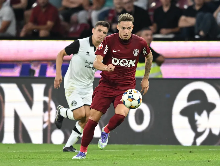Louis Munteanu in meciul de fotbal dintre FC CFR 1907 Cluj si FC Lugano, contand pentru UEFA League al doilea tur preliminar, desfasurat pe Stadionul Dr. Constantin Rădulescu din Cluj-Napoca, joi 31 iulie 2025. © FOTO: Flaviu Buboi/SPORT PICTURES