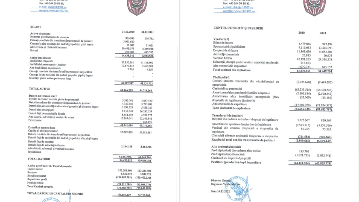 CFR Cluj, datorii uriașe! Neluțu Varga trebuie să plătească zeci de milioane de euro! Cum arată raportul financiar | FOTO