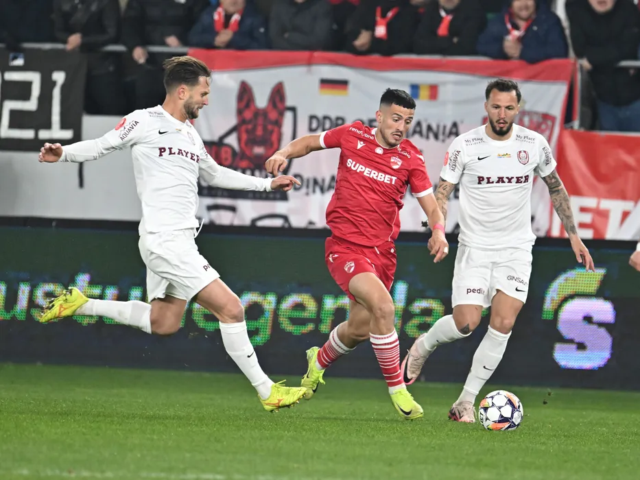 Damjan Djokovic, Selmani Astrit si Vasile Mogoș in meciul de fotbal dintre Dinamo Bucuresti si CFR Cluj, din cadrul Superligii Superbet, desfasurat pe Stadionul National Arcul de Triumf din Bucuresti, vineri 8 noiembrie 2024. © FOTO:Razvan Pasarica/SPORT PICTURES
