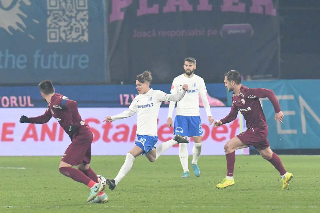 Luca Constantin Basceanu, Bogdan Ionut Tiru si Damjan Djokovic, Constantin Adrian Paun in meciul de fotbal dintre FC CFR 1907 Cluj si FC Farul Constanta, contand pentru Superliga Superbet, desfasurat pe Stadionul Dr.Constantin Radulescu din Cluj-Napoca, luni 27 ianuarie 2025. © FOTO: Flaviu Buboi/SPORT PICTURES