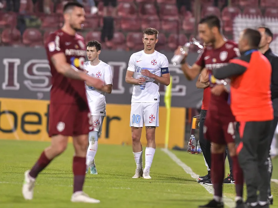 Adrian Romeo Nita si Florin Lucian Tanase la o pauza de hidratare in meciul de fotbal dintre CFR Cluj si FCSB, contand pentru Play-off-ul Ligii 1 Casa Pariurilor, desfasurat pe Stadionul Dr. Constantin Radulescu din Cluj Napoca, marti 25 mai 2021. © FOTO:Razvan Pasarica/SPORT PICTURES
