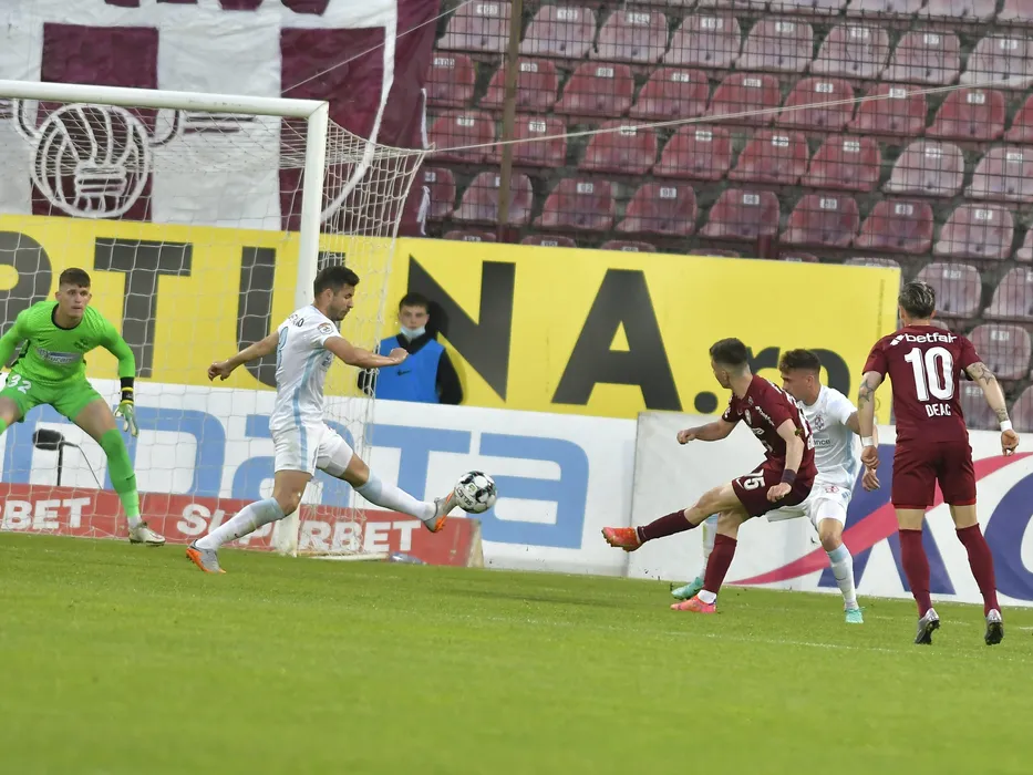 Mihai Adrian Gidea marcheaza un gol in poarta lui Stefan Tarnovanu de langa Lucian Ionut Filip si Sorin Danut Serban in meciul de fotbal dintre CFR Cluj si FCSB, contand pentru Play-off-ul Ligii 1 Casa Pariurilor, desfasurat pe Stadionul Dr. Constantin Radulescu din Cluj Napoca, marti 25 mai 2021. © FOTO:Razvan Pasarica/SPORT PICTURES