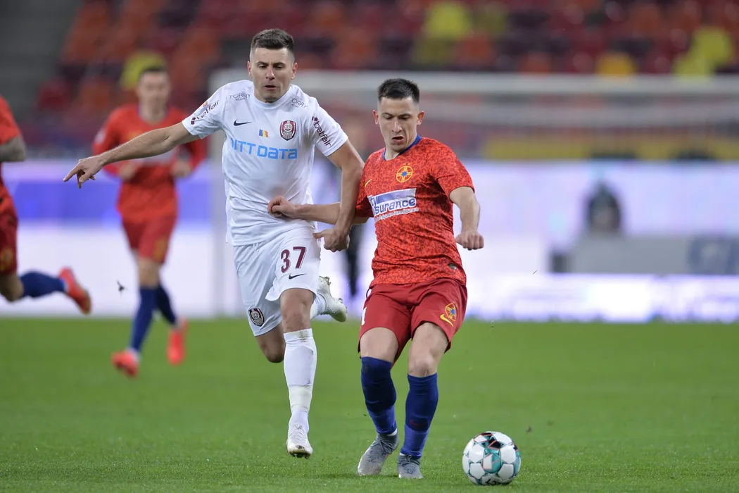 Echipele FCSB (echipament rosu) si CFR Cluj s-au intalnit intr-o partida disputata in etapa 28 din Liga 1 la fotbal, vineri 19 martie 2021, pe Arena Nationala din Bucuresti. ALEXANDRU DOBRE / MEDIAFAX FOTO