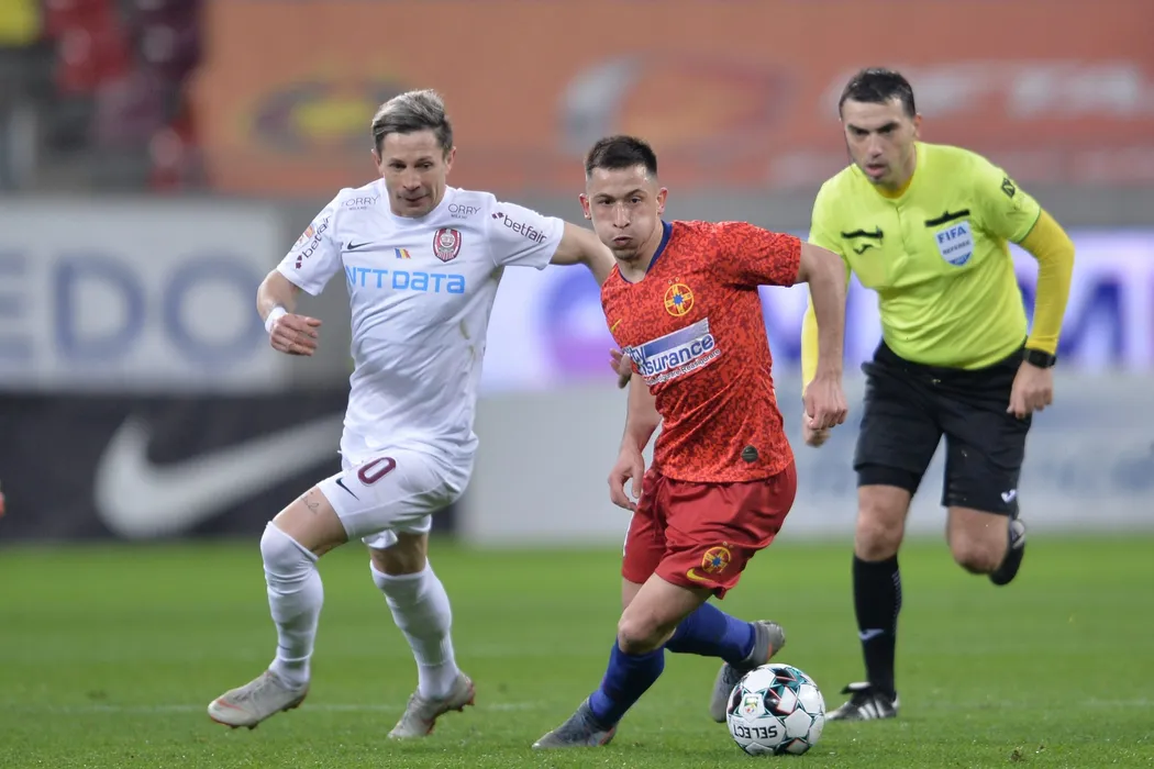 Echipele FCSB (echipament rosu) si CFR Cluj s-au intalnit intr-o partida disputata in etapa 28 din Liga 1 la fotbal, vineri 19 martie 2021, pe Arena Nationala din Bucuresti. ALEXANDRU DOBRE / MEDIAFAX FOTO