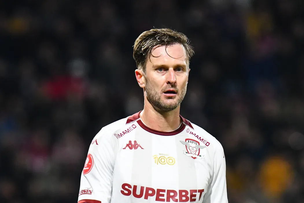 Damjan Djokovic is playing for CFR 1907 Cluj against FC Rapid 1923 Bucuresti at Dr. Constantin Radulescu Stadium in Cluj-Napoca, Romania, on February 10, 2024.