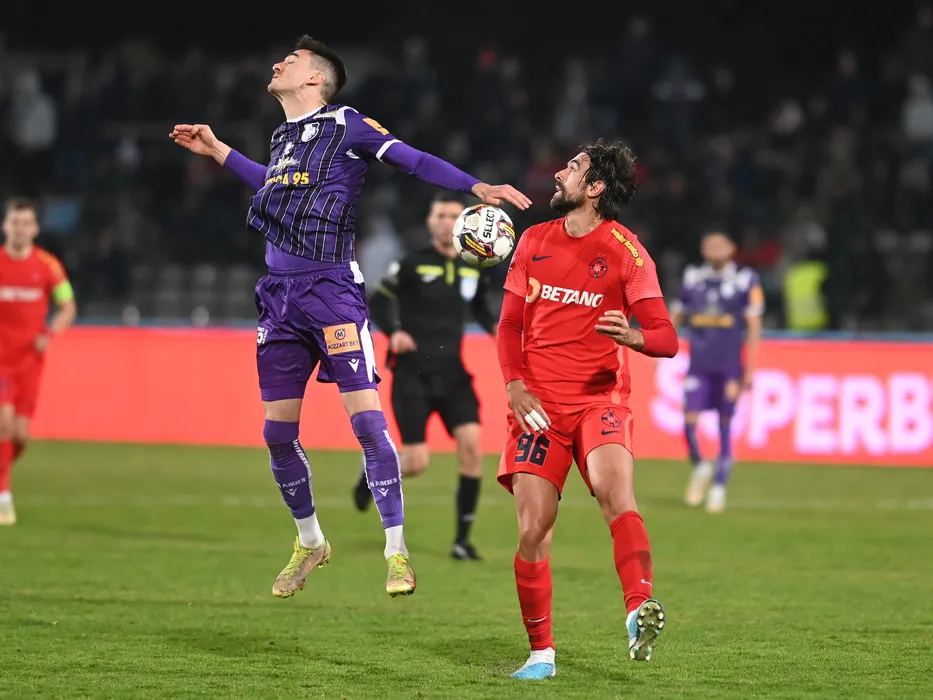 Mario Zebic si Andrea Compagno in meciul de fotbal dintre FC Arges si FCSB, contand pentru Superliga Superbet, desfasurat pe Stadionul Nicolae Dobrin din Pitesti, duminica 26 februarie 2023. © FOTO:Razvan Pasarica/SPORT PICTURES