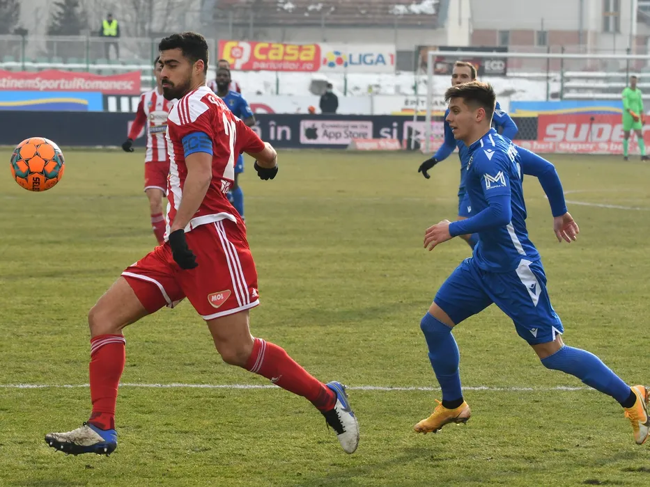 Rachid Ahmed Bouhenna si Ion Gheorghe in meciul de fotbal dintre Sepsi OSK Sfantu Gheorghe si FC Voluntari, contand pentru Liga 1 Casa Pariurilor, desfasurat fara spectatori pe Stadionul Municipal din Sfantu Gheorghe, sambata 30 ianuarie 2021. © FOTO:Bogdan Balas/SPORT PICTURES