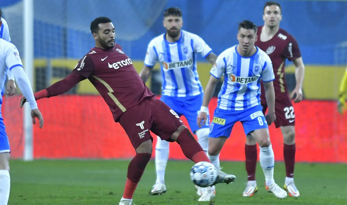 Billel Abdel Slem Omrani si Alexandru Mateiu in meciul de fotbal dintre Universitatea Craiova si CFR Cluj, contand pentru Play-off-ul Ligii 1 Casa Pariurilor, desfasurat pe Stadionul Ion Oblemenco din Craiova, duminica 10 aprilie 2022. © FOTO:Razvan Pasarica/SPORT PICTURES
