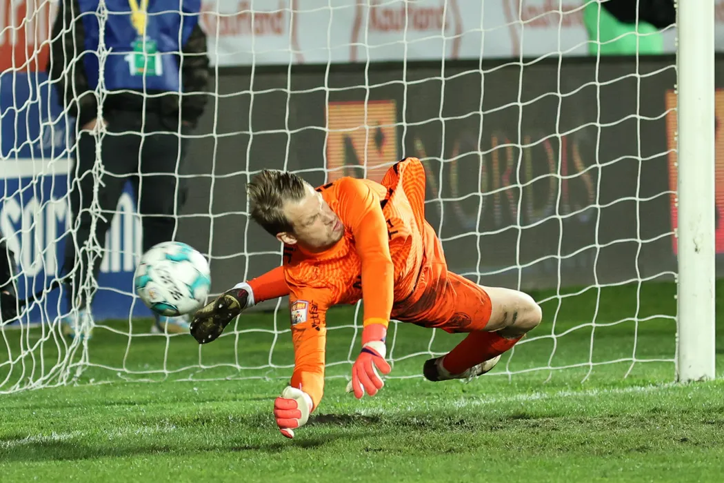 Portarul Gedrius Arlauskis de la CFR Cluj apara in partida cu FCSB din finala Supercupei Romaniei la fotbal, partida disputata pe stadionul Ilie Oana din Ploiesti, joi, 15 aprilie 2021. GEORGE FLUSTER / MEDIAFAX FOTO