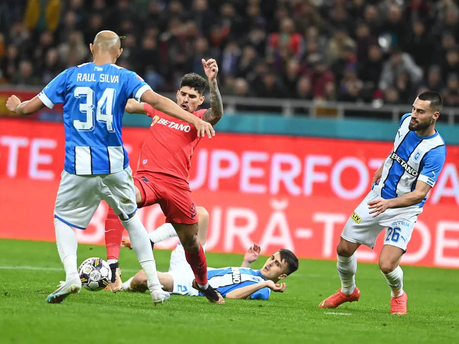 Florinel Teodor Coman si Gjoko Zajkov in meciul de fotbal dintre FCSB si Universitatea Craiova, contand pentru Superliga Superbet, desfasurat pe Arena Nationala din Bucuresti, duminica 19 februarie 2023. © FOTO:Razvan Pasarica/SPORT PICTURES