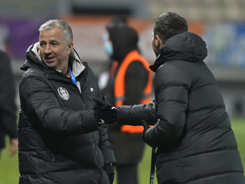 Dan Petrescu se bucura dupa victoria din meciul de fotbal dintre Chindia Targoviste si CFR Cluj, contand pentru Liga 1 Casa Pariurilor, desfasurat pe Stadionul Ilie Oana din Ploiesti, sambata 4 decembrie 2021. © FOTO:Razvan Pasarica/SPORT PICTURES